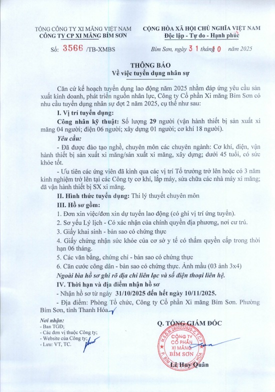 Thông báo tuyển dụng nhân sự đợt 2 năm 2025